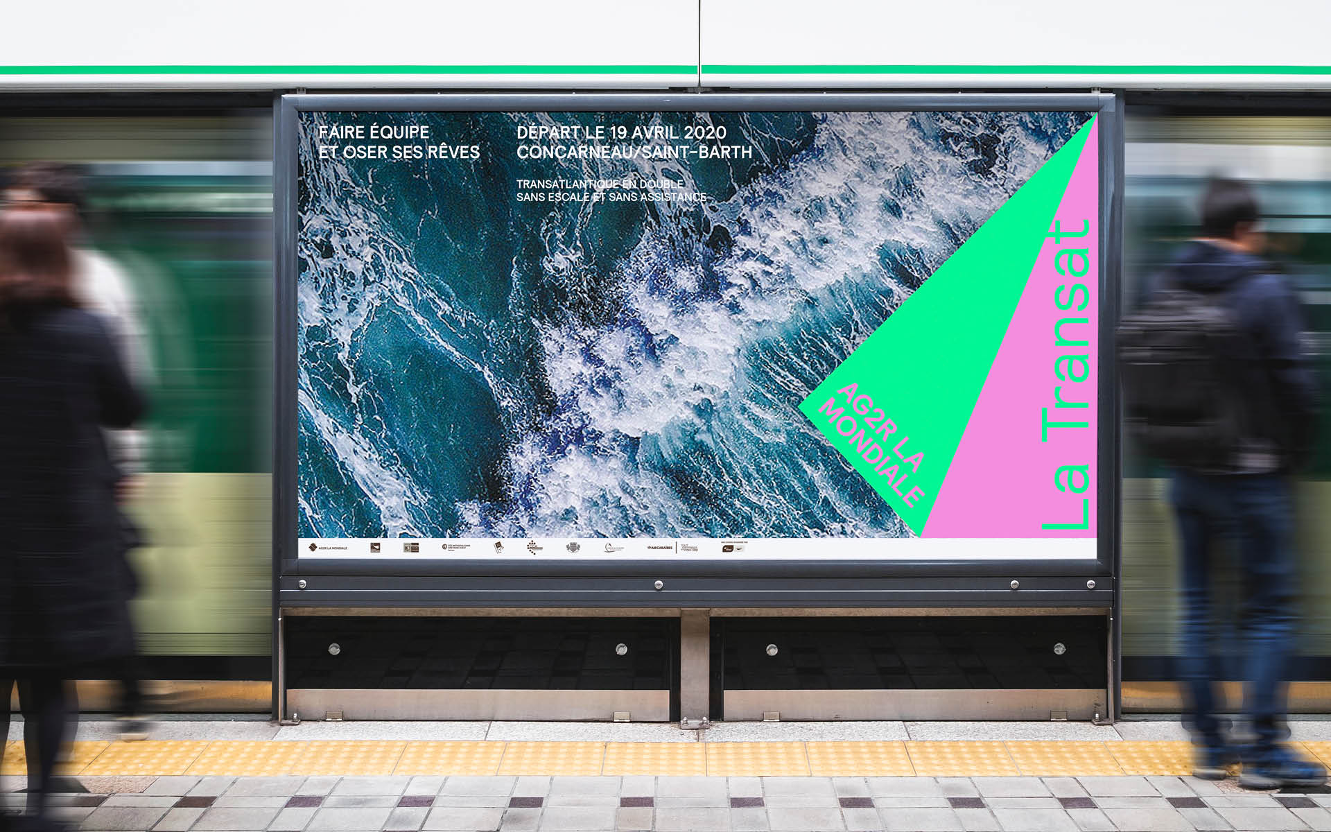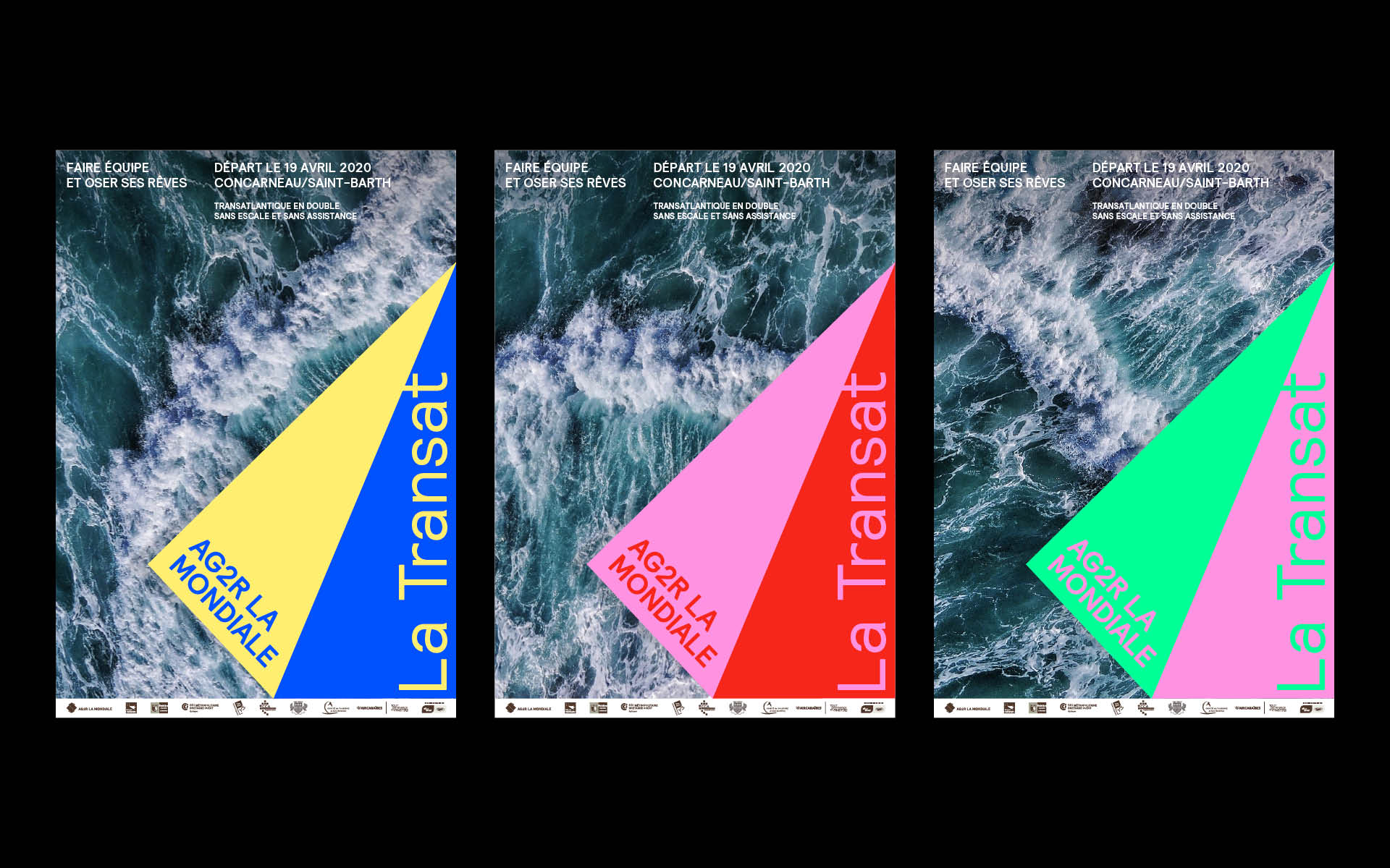 Visual identity for the French sailing race La Transat sponsored by ALM. Using the visual cue from ALM’s main brand identity, we reintroduced the ALM fold as a colourful and vibrant sail in order to mark this year’s event.